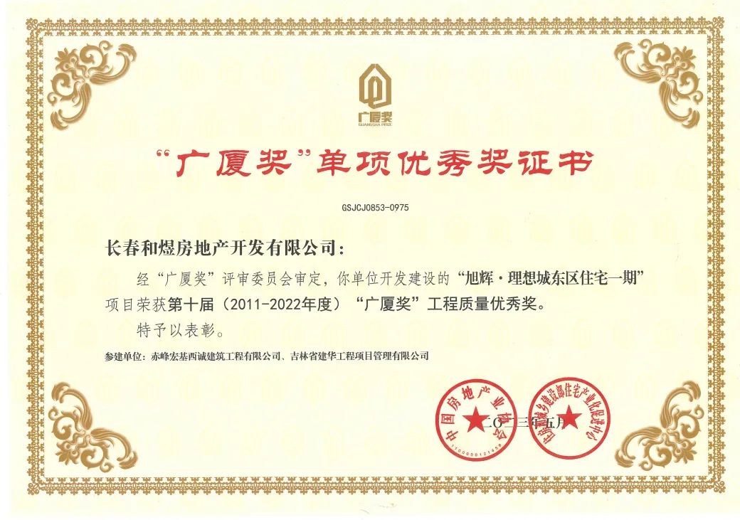 克日,, ,,,由中国房地工业协会、住房和城乡建设部住宅工业化增进中心配合组织的第十届“广厦奖”第二批(增补)获奖项目揭晓,, ,,,长春LETOU·(中国区)有限公司官网·理想城东区住宅一期依附优异的工程品质脱颖而出,, ,,,荣获综合大奖及“工程质量优异奖”单项奖,, ,,,与第一批获奖的沈阳LETOU·(中国区)有限公司官网·璟宸府双双荣获表扬,, ,,,两座曾落地“LETOU·(中国区)有限公司官网透明工厂”的交付社区为LETOU·(中国区)有限公司官网一次性捧回两座国家级行业综合性大奖——“广厦奖”!