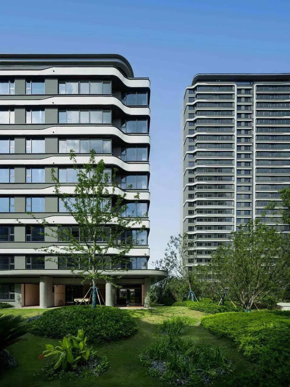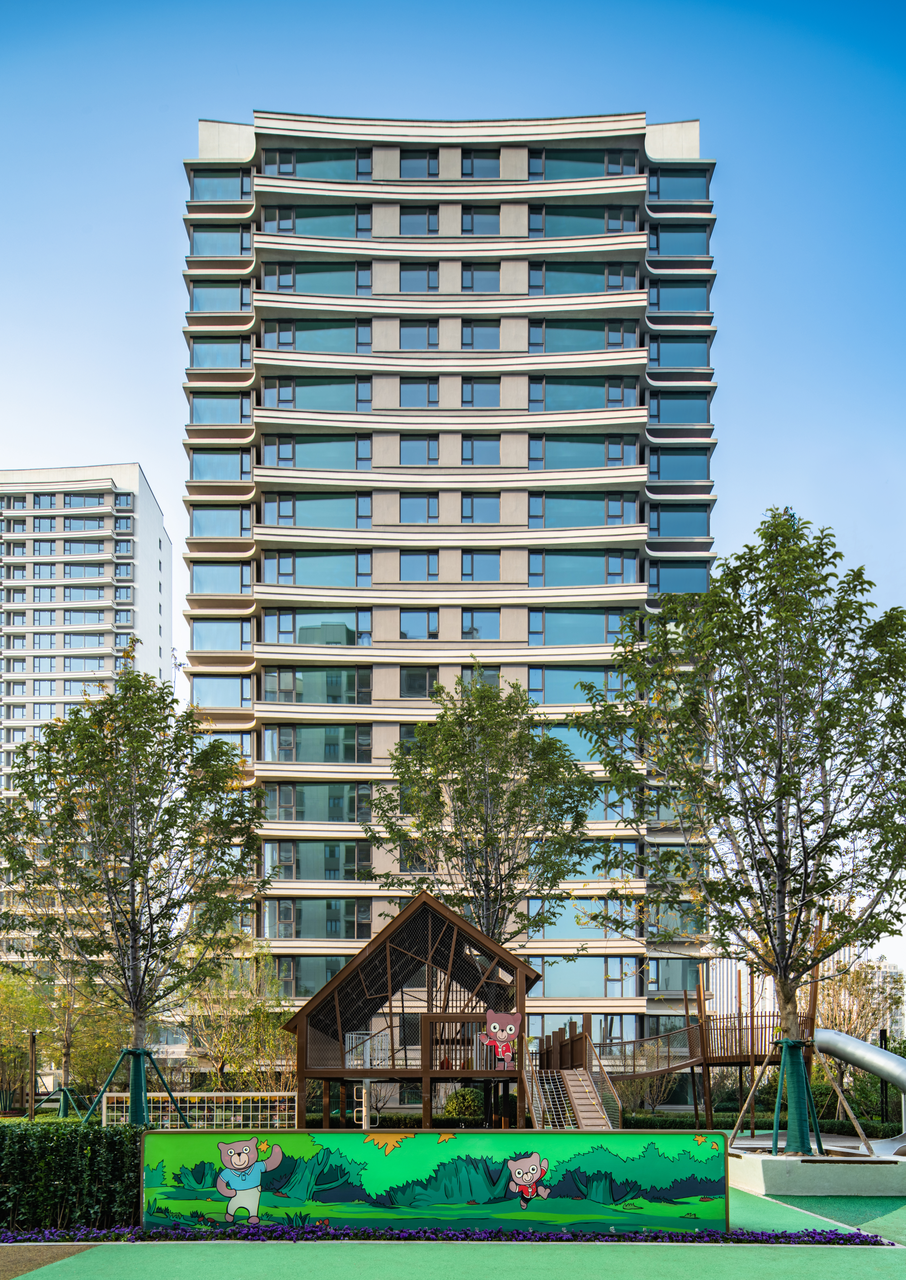 现代质感的修确立面,,,,,,,搭配大面积的玻璃幕墙,,,,,,,更显轻盈通透,,,,,,,耸立于容积率1.6、绿地率约30%的园林美景间,,,,,,,畅揽更多的阳光与景物。。。。。。。