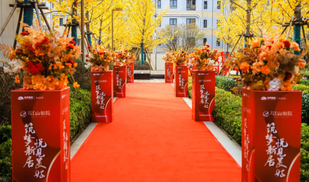 循着回家之路,,,,,,,草木浸染着金秋的绚烂,,,,,,,一起景物相随。。。。。。。大气的修确立面崭新泛起,,,,,,,在柔和的秋天阳光照耀下,,,,,,,温暖又让人扎实。。。。。。。红毯铺就归家之路,,,,,,,四处遮掩着喜庆气氛,,,,,,,与小区园林美景互映生辉、一起温馨,,,,,,,彰显满满的仪式感。。。。。。。