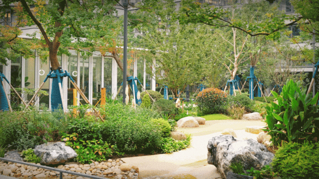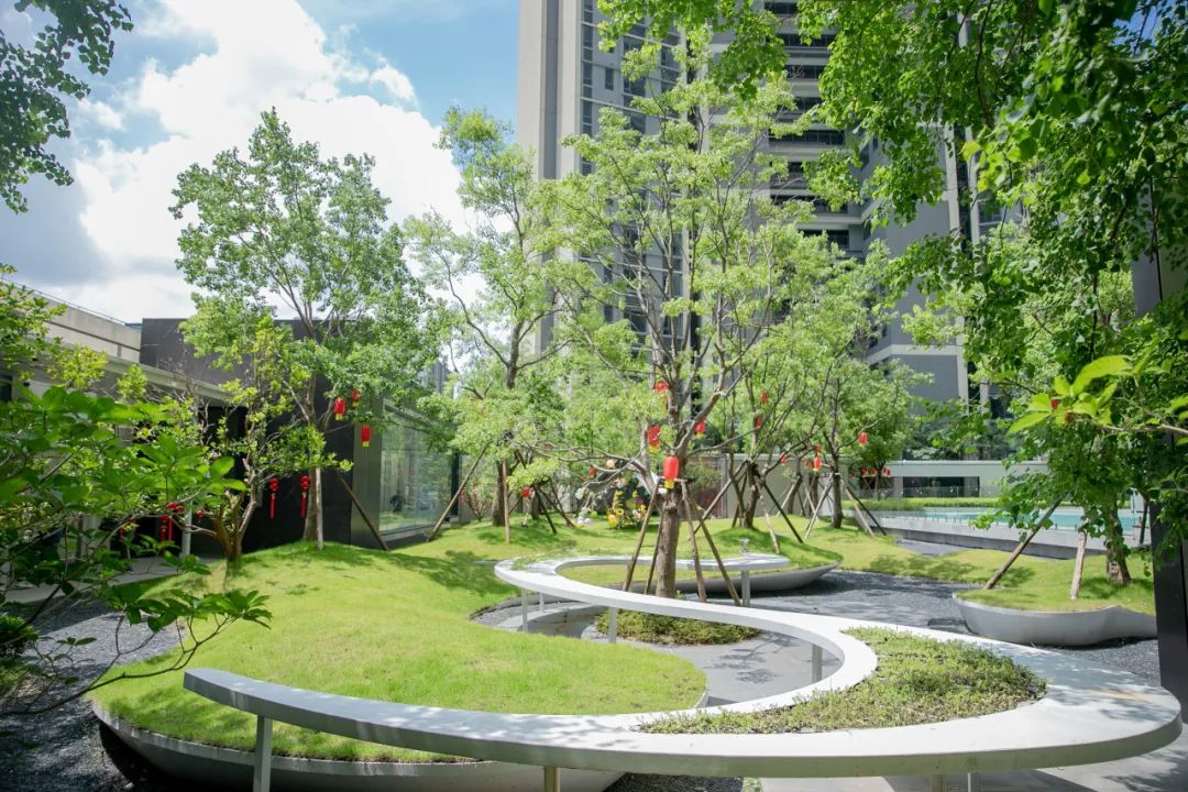 郁郁葱葱的艺术景观园林,,,,,,,坐落于社区的焦点,,,,,,,展现“纯粹、生态、共生”的美学之境。。。。。。。