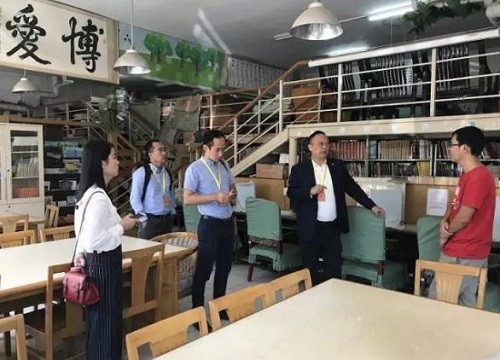 邹晓东博士一行旅行学校图书馆 , ,, ,,讨论捐建四大发明实验室等